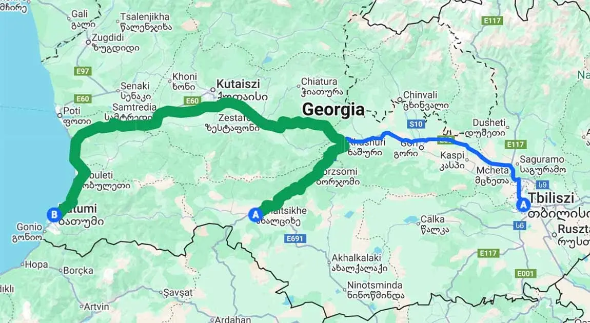 A Tbiliszi – Batumi út az egyik legkedveltebb túraútvonal Grúziában. Azonban, ha még nem jártál erre, nagyon figyelj, mit javasol a navigáció.