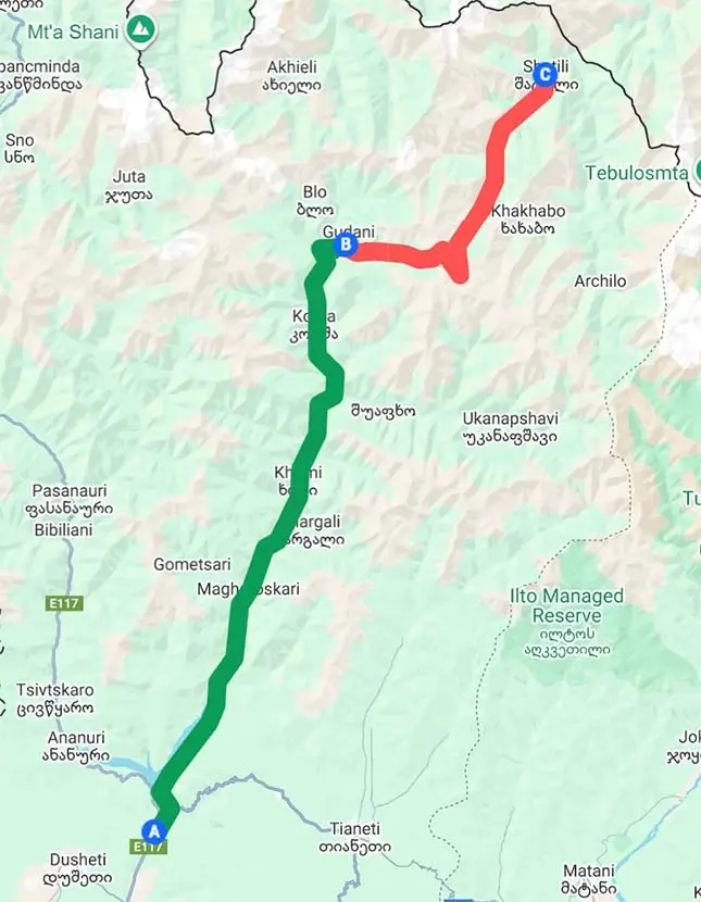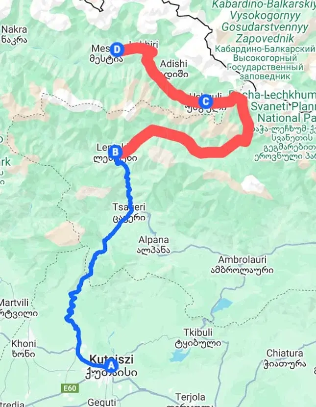 Ajánlott alternatíva: Kutaiszi – Dzsvari – Mestia (Google Térképen elérhető).