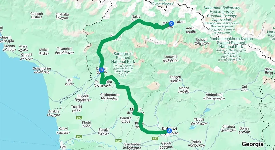 - „Akhaltsikhe – Batumi” az Goderdzi-hágón keresztül, „Mesztia – Ushguli – Lentekhi” (vagy fordítva), „Szairme – Abasztumani”.